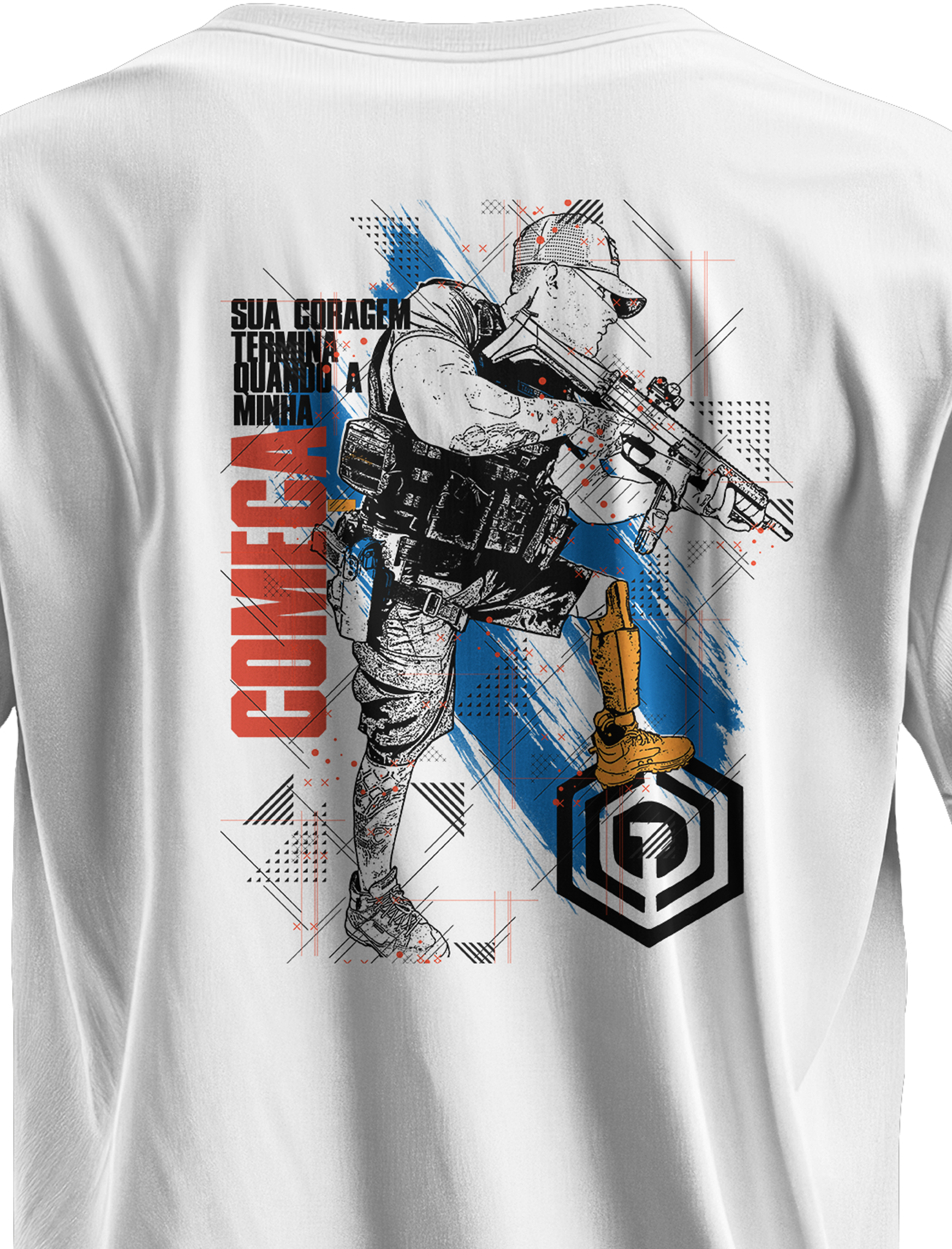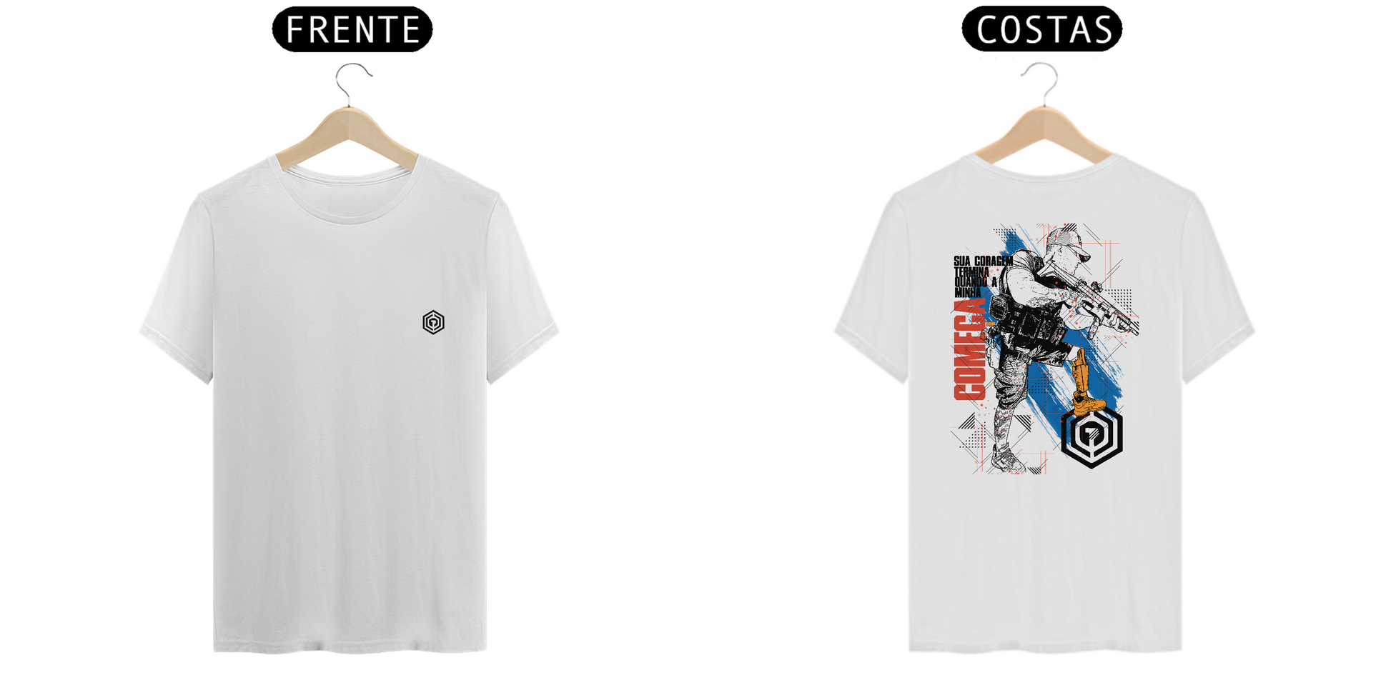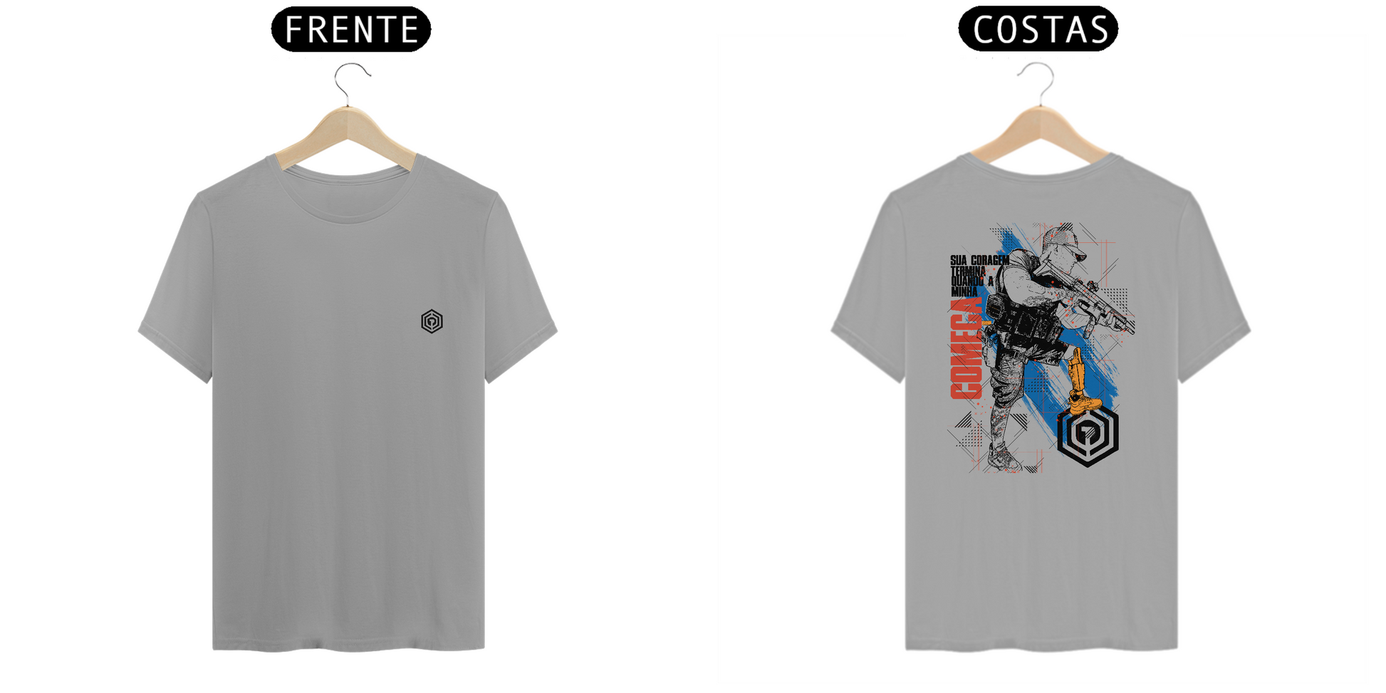 Malha Alfa (165g) — corte ajustado ao corpo; mangas de abertura slim (aderem mais ao braço).